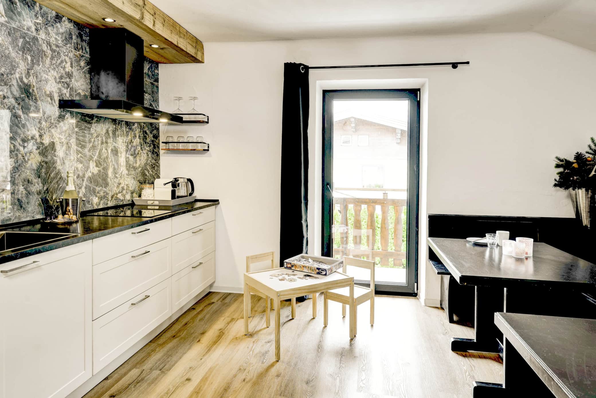 Das Bergnest bietet Raum für zwei Personen mit zusätzlichem Platz für Kinder oder Freunde. Die Wohnung besteht aus: